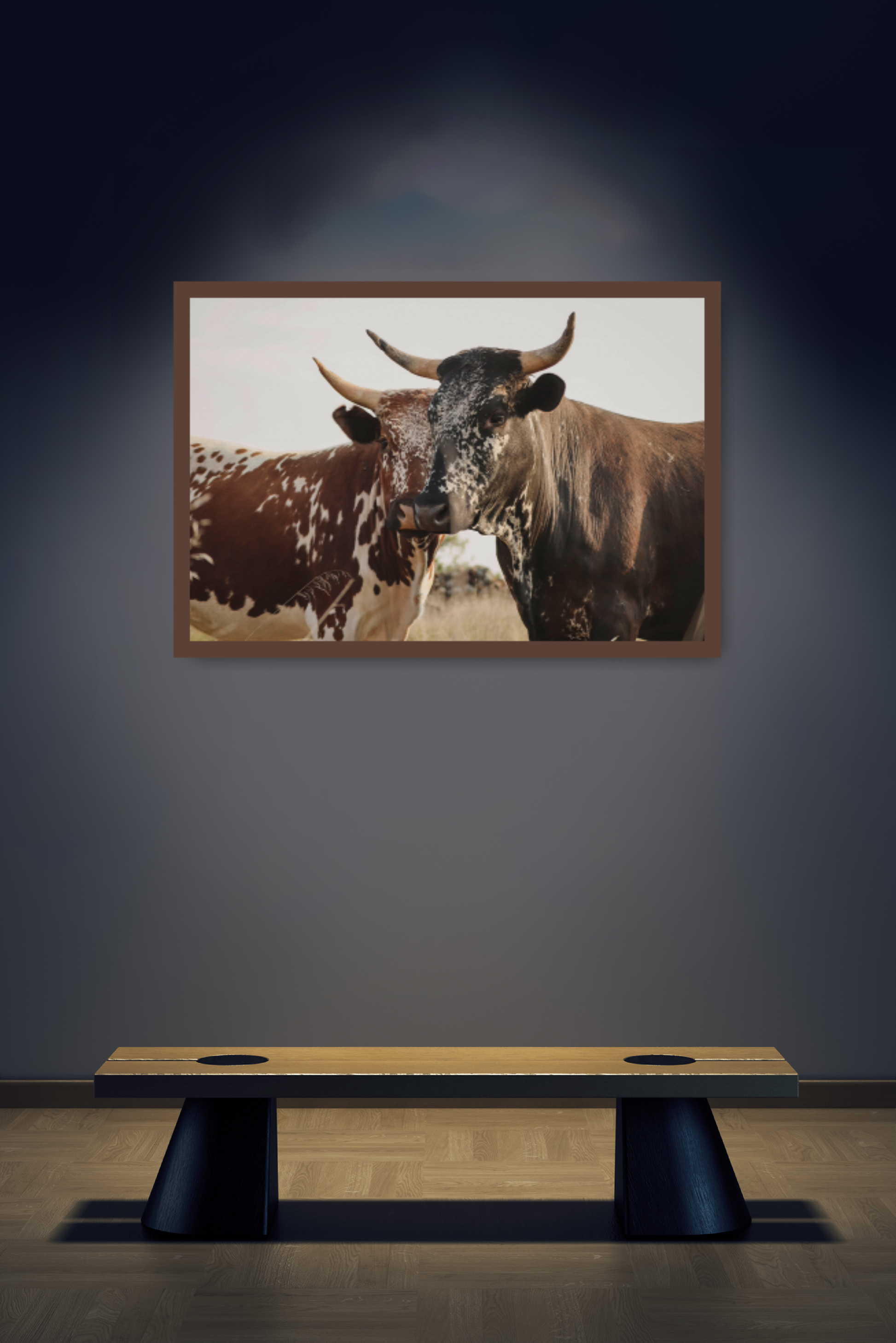 Bring the beauty of the open range into your home with The Painted Pair, a striking original photography print featuring two majestic, Nguni cattle in perfect balance. Captured in warm, earthy tones, this image adds a rustic yet elegant touch to any space.